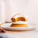 Generously frost cooled cookies and if desired, sprinkle them with a little pumpkin pie spice.