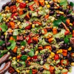 Quinoa and Black Bean Salad combines roasted sweet potatoes, corn, black beans, and a fresh cilantro dressing into a flavorful dish for any meal or weekly prep.