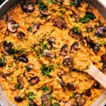 Melt butter and heat oil in a large skillet over high heat. Add onion and cook 3–5 minutes, until golden. Add mushrooms and cook 2–3 minutes more, stirring occasionally.