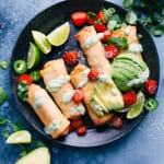 Optional Sauce: Zest and juice limes to get 1/4 teaspoon zest and 2 tablespoons juice. Add zest and juice with all sauce ingredients to a food processor. Add salt and pepper to taste (I add 1/4 teaspoon salt and 1/8 teaspoon pepper) and blend or pulse until smooth. Serve alongside cooked egg rolls.