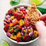 Strawberry Mango Salsa is a fresh, fruity blend of mango, strawberries, cilantro, lime, honey, and a hint of jalapeño—perfect for a flavorful snack or appetizer!
