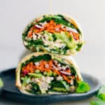 Note 1:Use my favorite Baked Chicken Breast recipe (leave out the paprika, oregano, and brown sugar) to cook up the chicken, then shred for these wraps. Or use prepared rotisserie chicken from the store.Note 2: This adds a delicious Thai-inspired flavor to the wraps. Mae Ploy's® sauce is our favorite and can typically be found on the condiment or international aisle of your grocery store.Storage: To prepare these wraps ahead of time, keep components separated, especially the pickled veggies and sauce to prevent tortillas from getting soggy. Assemble when you’re ready to eat.