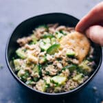 Chill for 10–15 minutes if time permits, otherwise dig in right away—either straight from the bowl, with crackers, in a sandwich/melt, in a lettuce wrap, or whatever you’d like! Always re-stir leftovers.
