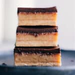 Note 1: A 9x9-inch pan is important for success. An 8x8 can work but requires careful caramel monitoring for tiny bubbles and minimal jiggle when pan is shaken. Too much wobble means it’s not set yet, so keep it in the oven a bit longer.Note 2: Use only full-fat sweetened condensed milk; reduced-fat or sugar-free won’t give the same results. Avoid accidentally using evaporated milk.Note 3: Semi-sweet chocolate chips cut sweetness, but milk chocolate is closer to Twix's taste. High-quality chocolate like Ghiradelli or Guittard melts smoother and tastes better.Storage: Store Twix bars at room temperature in an airtight container for 3–5 days. On hotter days, refrigerate to keep layers from melting. For best flavors, serve at room temperature.