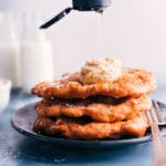 Note 2: Try some of these toppings! Sugar-cinnamon mix (mix together 1/2 cup granulated sugar + 2 tablespoons ground cinnamon), softened honey butter, softened regular butter, honey, powdered sugar, fresh berries, jam, syrup, etc. (Or top it with something savory like taco seasoned ground beef).Note 3: Test milk temperature: Drizzle a few drops of the warmed milk on the inside of your wrist. If it is warm and comfy, it will be perfect for the yeast. If it feels hot, it will be too hot for the yeast. Too cold and the yeast will simply remain dormant.Nutrition Note: Calories do not include toppings, just the fry bread, as toppings may vary.Storage: Like most fried foods, scones are the absolute best right out of the fryer! I don’t recommend frying ahead of time. You can store scones (before topping with butter/honey/etc.) loosely wrapped with plastic wrap for 1–2 days. Texture and flavor does suffer the longer the scones have been out of the fryer.MakeAhead: Cover the dough tightly and place in the fridge. Refrigerate for up to 8 hours. When ready to fry, remove dough from the fridge and allow it to come to room temperature before frying.