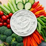 Note 1: I've found Hidden Valley Ranch to deliver the best and most consistent flavor.Note 2: Serve dip with fresh veggies like carrots, bell peppers, cucumbers, cherry tomatoes, celery, broccoli, and snap peas. For more crunch, add pita chips, pretzels, or chips. Sliced baguette or breadsticks are great too.Storage: Keep the dip in an airtight container in the fridge; the flavor actually improves, so it’s great to make a few days early.