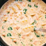 Remove the bay leaves. Lower the heat and stir in the cream, spinach, chicken, and Parmesan (a small handful at a time) until melted and smooth. Taste and adjust seasoning. For a thinner soup, add more broth; for a thicker soup, increase the heat and simmer a bit longer.