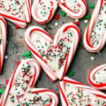 Set the candy canes on the tray—two together to form hearts all over the tray.